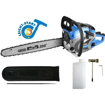 •incl. Oregon rúd és lánc •rendkívül hatékony rezgéscsillapító rendszer •rugós indításkönnyítő rendszer •gyújtószivattyú és fojtószelep a tökéletes indítási jellemzőkért •üzemanyagszintjelző •kiváló minőségű Walbro - karburátor •lapátvédő a biztonságos tároláshoz •fém karmos ütköző •könnyen hozzáférhető légszűrő •mindkét oldalra szerelt forgattyús tengely •biztonsági kikapcsoló •üzemanyagkeverő tartállyal, univerzális gyújtásrendszerrel együtt. Üzemanyagkeverő tartály, univerzális gyertyakulcskulcs és láncreszelő (fogantyú nélkül) •imbuszkulcs